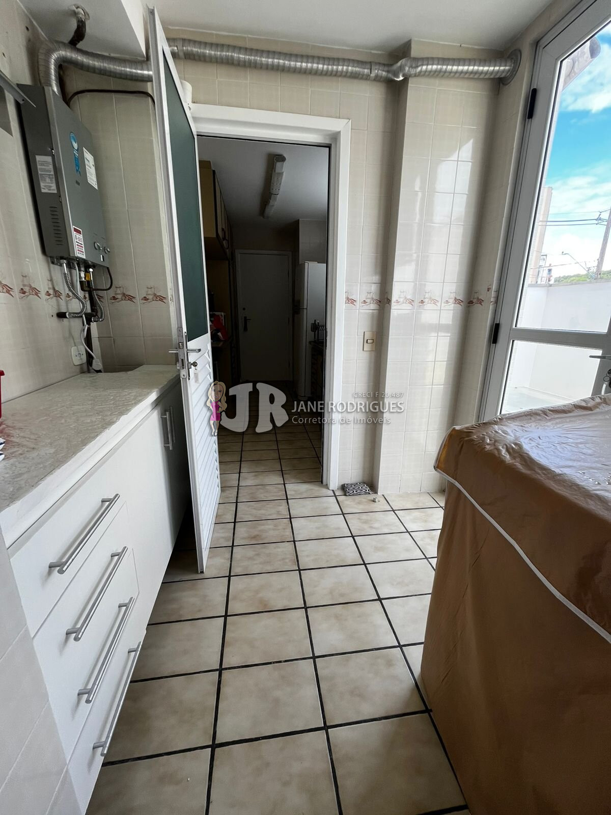 Salão de festas privativo integrado ao apartamento, com churrasqueira e vista deslumbrante para a charmosa pracinha da Praia Mansa.
